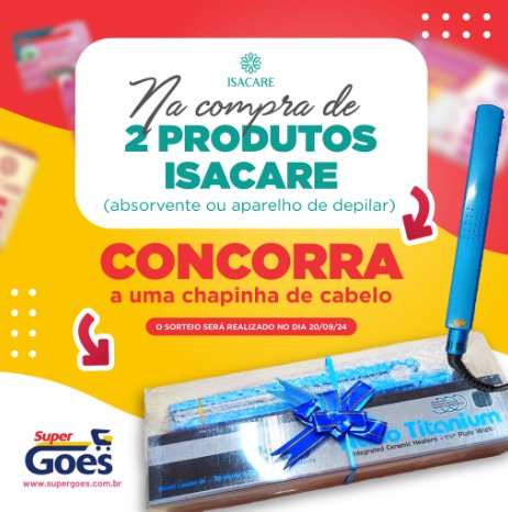 Na compra de 02 produtos ISACARE (absorvente ou aparelho de depilar) concorra a uma chapinha de cabelo.